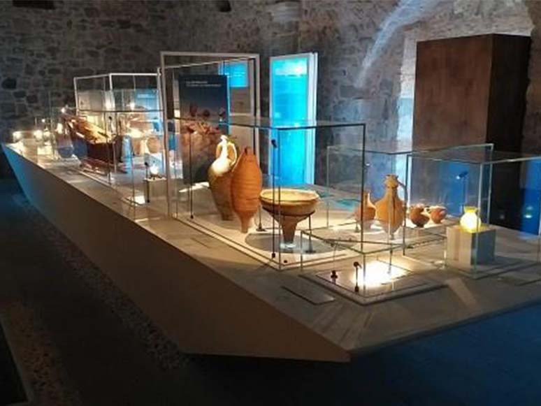 Bodrum Kalesi içerisinde bulunan ve dünyanın en önemli sualtı arkeoloji müzeleri arasında yer alan Bodrum Sualtı Arkeoloji Müzesi içinde Amphora sergilemesi, Doğu Roma Gemisi, İngiliz Kulesi, Katliam Odaları, Sikke ve Mücevherat Salonu, Karyalı Prenses Salonu, Sam Salonu ve Alman Kulesi isimli sergi alanlarını bulundurur.