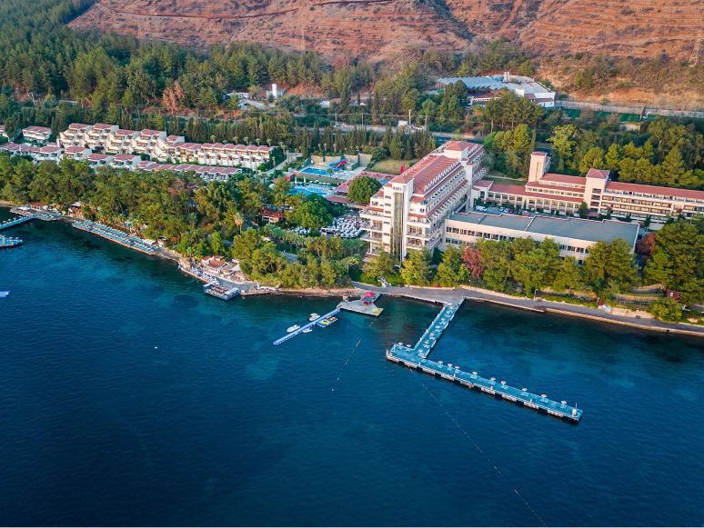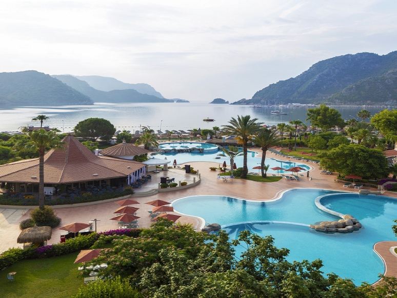 Fethiye'de bir resort otel. Denize sıfır konumu, gemileri, havuzları ve aile dostu ile popüler bir seçenek.
