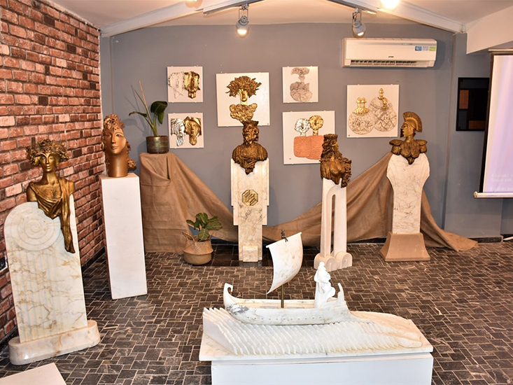 Çoğu mermerden yapılmış, bakır ve altın kaplamayla renklendirilmiş eserlerin yer aldığı sergi, 10 Eylül'e kadar ziyaret edilebilecek.
