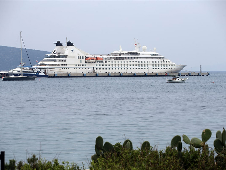 Santorini Limanı'nın ardından rotasını Güney Ege'ye çeviren 143 metrelik gemi, Bodrum Cruise Port iskelesine yanaştırıldı.