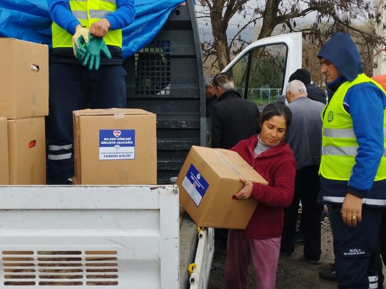 Muğla Büyükşehir Belediyesi deprem bölgesindeki yaraları sarmak için çalışmalarına devam ediyor. Bu kapsamda Büyükşehir Belediyesi tarafından deprem bölgesindeki vatandaşlara ve esnafa destek sağlamak amacıyla gıda yardım kolilerinin dağıtımına başlandı.