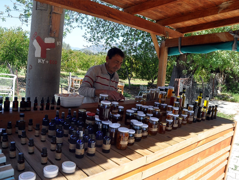 Girişimci Nurten Yiğit de kendi ürettikleri sabun, nar ekşisi, nar suyu, zeytinyağı, bal, pekmez, kekik suyu, kantaron yağı gibi yöresel ürünleri, ahşap kulübelerde satışa sunduklarını belirtti.