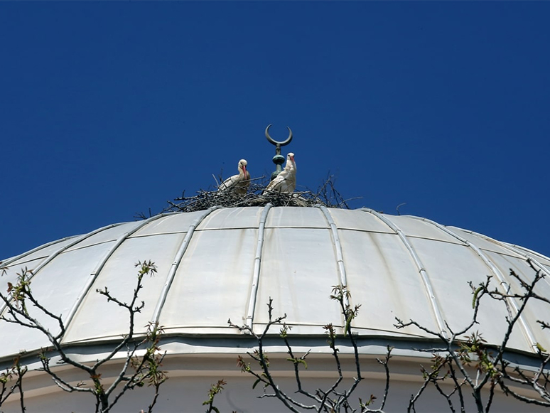 Muslihittin Mahallesi'nde 26 yıl önce yapımı tamamlanan Şeyh Muslihittin Camisi'ne her yıl nisan ayında gelen leylekler mahalle sakinlerinin ilgisini çekiyor. Leyleklerin kubbeye yaptığı yuvaya, cami yöneticileri de özenle bakıyor.