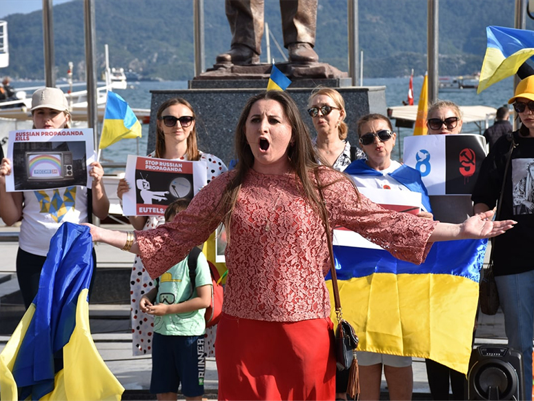 Muğla'nın Marmaris ilçesinde yaşayan Ukraynalılar, Rusya'nın saldırılarının bir an önce durdurulmasını istedi.