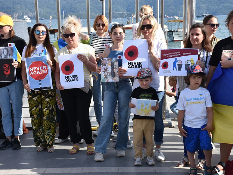 Ukrayna'nın çeşitli kentlerinden savaştan kaçarak gelenler de yaşadıklarını dile getirdi. Gruptakilere meydandan geçen turistler de destek verdi.
