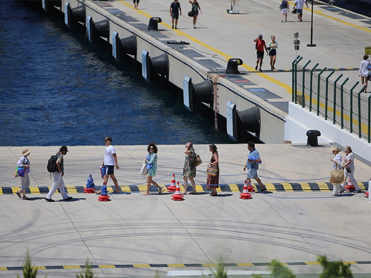 Girit Limanı'ndan yola çıkarak Bodrum Cruise Port İskelesi'ne yanaşan 275 metrelik "Mein Schiff 5"te çoğunluğu Almanya'dan 2311 yolcu ile 889 personel bulunuyor.
