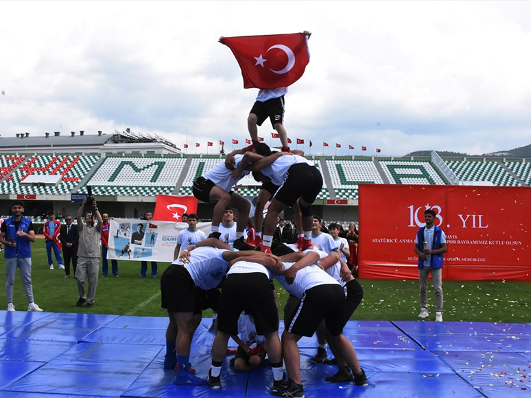 Atatürk Stadı'nda devam eden programda, Atatürk'ün Gençliğe Hitabesi ve Gençliğin Ata'ya cevabı okundu. Halk oyunları ile boks, jimnastik, güreş gibi spor gösterilerinin ardından yarışmalarda dereceye giren milli sporculara ödülleri verildi.