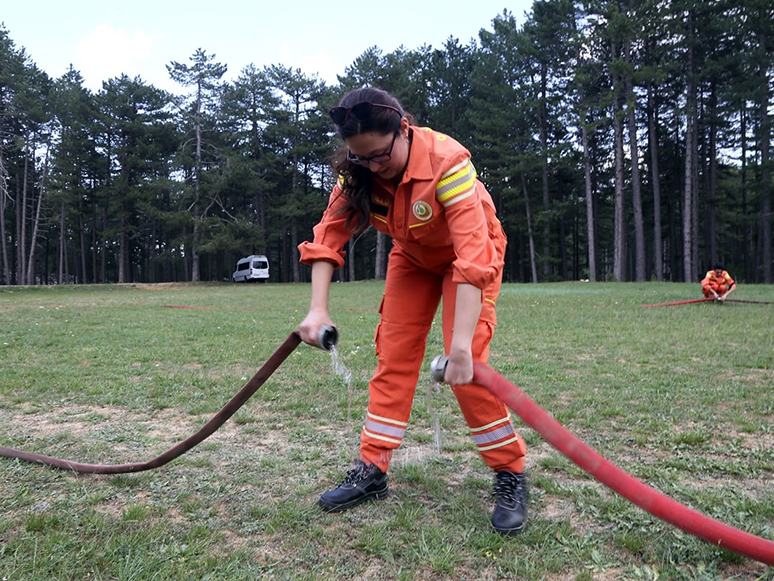 Eğitimin ikinci bölümünde ise Yılanlı Orman İşletme Müdürlüğünde uygulamalı eğitim gerçekleştirildi. Burada gönüllüler arasında hortum serme ve hortum ucuna en erken suyu verme yarışması yapıldı. 125 metre hortumu en erken seren ve arazözden hortum ucuna en erken suyu veren ekip ödüllendirildi. Eğitimin ardından yazılı sınav gerçekleştirildi.
