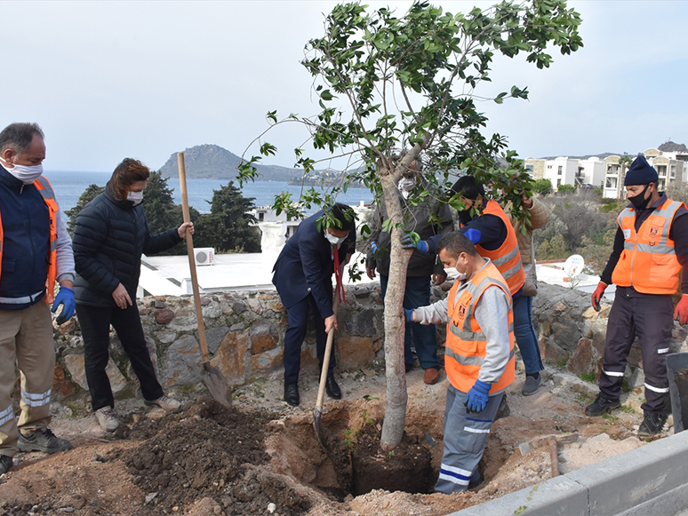 Bodrum ilçesinde şehit adına yaptırılan çeşmenin yanındaki ağaçların kesilmesi tepkilere neden oldu.
