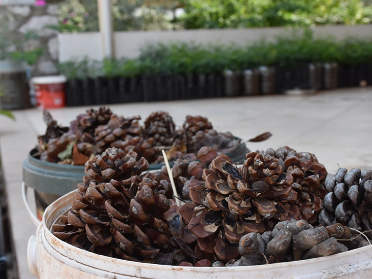 Muğla'nın Marmaris ilçesinde yaşayan turizmci Ali Demirtaş, selin getirdiği çam kozalaklarının tohumlarını fidana dönüştürüyor.