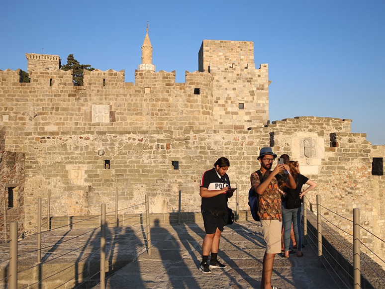 Aileleriyle ilçeye tatil için gelen yerli ve yabancı turistler, gezilerinin arasına Bodrum Kalesi'ni mutlaka ekliyor. Bodrum'un merkezinde bulunan kalede gün boyu ziyaretçi yoğunluğu yaşanıyor.