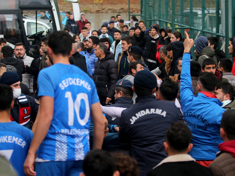 Futbolcular sahadan çıktığı sırada iki rakip oyuncu arasında yaşanan sözlü tartışma kavgaya dönüştü. Diğer futbolcular ile çevredeki taraftarların da karıştığı kavgaya, jandarma ekipleri müdahale etti. Ekiplerin uzun uğraşı sonucu taraflar güçlükle sakinleştirildi.