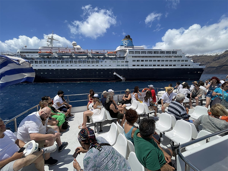 "Blue Sapphire" adlı yolcu gemisi, Bodrum Cruise Port İskelesi'nden çıkış yaparak 3 günlük tur ile İstanköy (Kos), Mikanos ve Santorini'ye, 4 günlük tur ile de Mikanos, Santorini ve Rodos adalarına gidiyor.