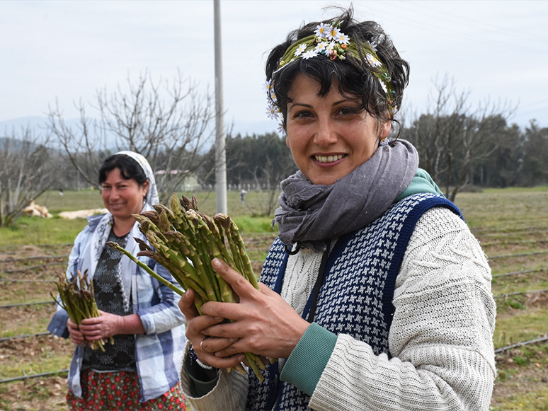 Bu sürede kuşkonmazın kendilerini hiç üzmediğini belirten Aksoy, "Yeşilçam Mahallesi'nde 2,5 dönüm arazide başladığımız kuşkonmaz üretimini istihdamını sağladığım kadınlarla kısa sürede 40 dönüme ulaştırarak, buradan yaklaşık 10 ton ürün elde ettik. Kuşkonmaz hikayemiz burada ilk başta 3-4 kadınla başladı. Bugün baktığımızda, organik üretim esaslarına göre üretimimizi 10-15 kadın ile birlikte gerçekleştiriyoruz. Mayıs sonuna kadar her gün hasat yapacağız. Ekibimiz gün geçtikçe burada çalışan kadınlarla büyüyecek." dedi.